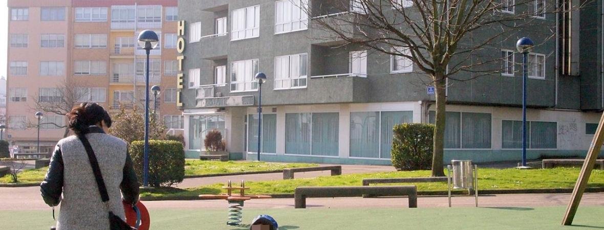 El Hotel ** A Barquiña forma parte de una Urbanización compuesta por 7 bloques que bordean una Plaza Ajardinada con asientos. Se trata de una zona muy tranquila con parque infantil y la cual goza de tiendas, bares, supermercados, peluquería, gasolinera, taller de coches, farmacia, bancos, Admon Loterías, Estanco, etc